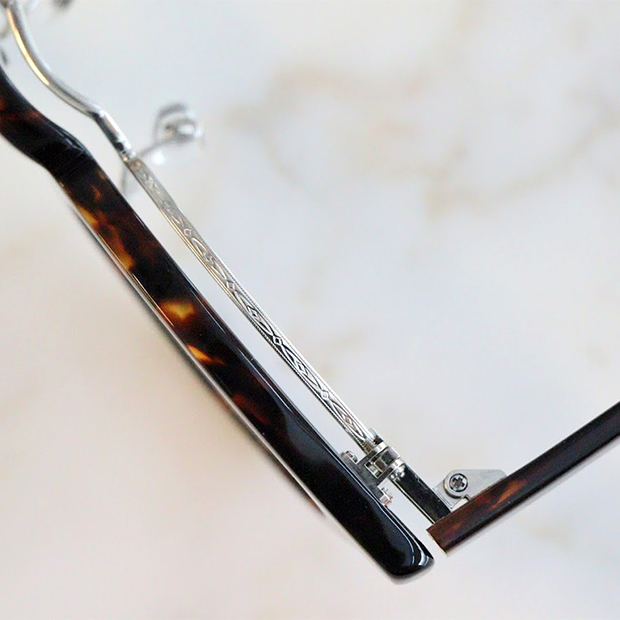 極太なワイドテンプルを配した独特なデザインのモデル。