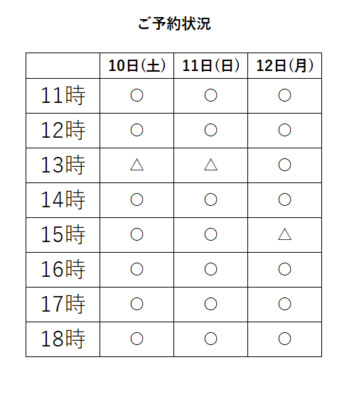 〇ご予約枠あり △ご相談ください ×ご予約済み