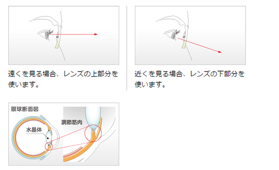 レンズの下方向に、「近く」をサポートする度数のゾーンを設けることで、
