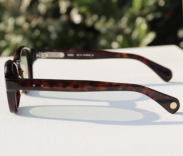 カシメやヒンジ、テンプルエンドなどにはブランドロゴの刻印や細部にまで行き届いたディティールからはブランドならではのセンスと美意識を感じられます。