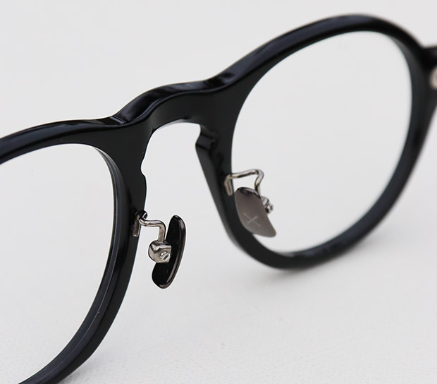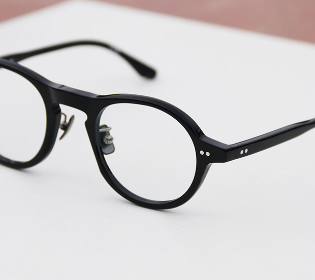 目尻がやや垂れ下がったような独特なシェイプが、フレーム全体に柔らかさを生み出し、掛けた時に表情を穏やかに見せてくれます。