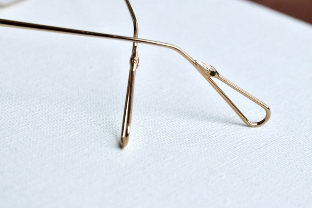 テンプルエンドは、アンティークアイウェアから着想を得た形状となっており先が丸くなっています。
