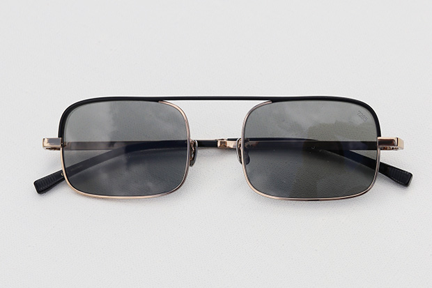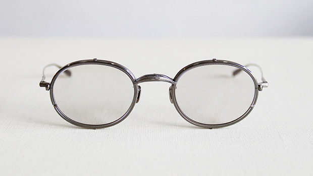 小ぶりなオーバルシェイプのメタルフレームをベースに、メタル・プラスチック・リムレスの3種のレンズを付け替えられる特別感満載のモデル。
