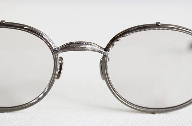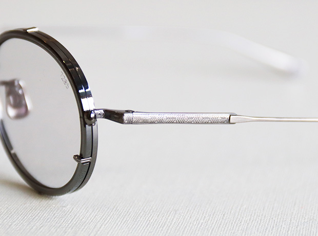 ブリッジ部分とテンプルには直線的な模様の彫刻。スタイリッシュな印象を際立たせています。