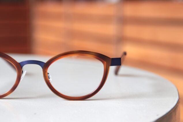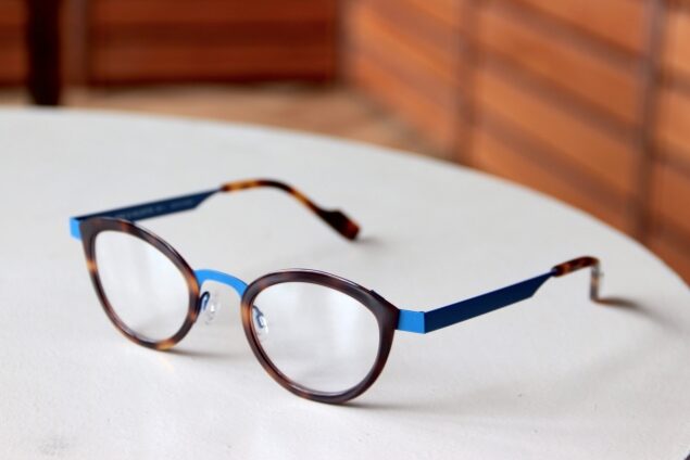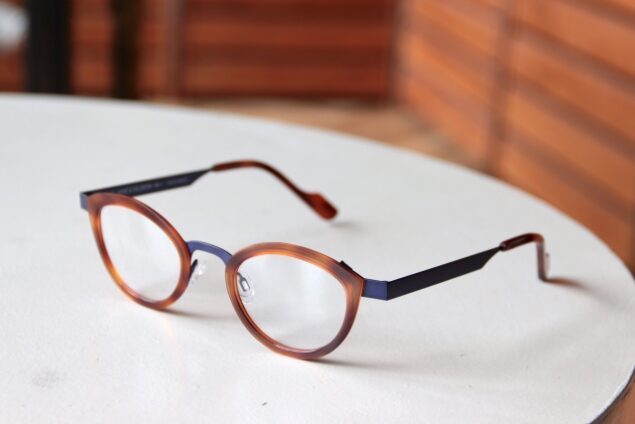 アクセントになる明るいカラーをメタルパーツに使いながら、目元の表情はデミ柄にすることで雰囲気を落ち着かせています。