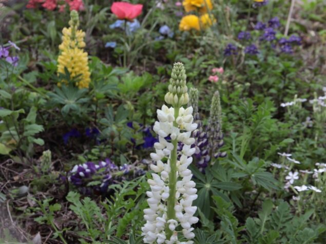 目の前の花は白色ですが、白反射して輪郭がわかりづらくまぶしく感じます。