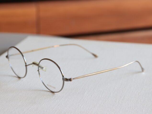 クラシックなラウンド型のメタル一山式の眼鏡です。