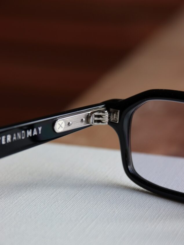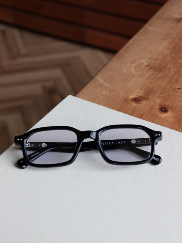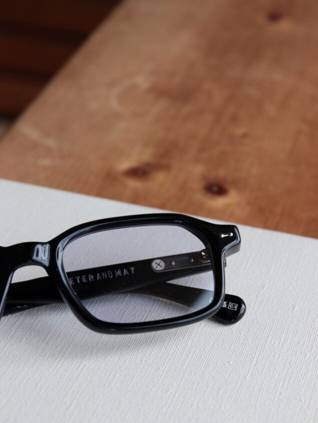 スクエアシェイプのモデルですが、ピーターアンドメイらしくブロウラインはやや下がり気味に、角は少し丸くしたオリジナリティーのあるスクエアシェイプです。