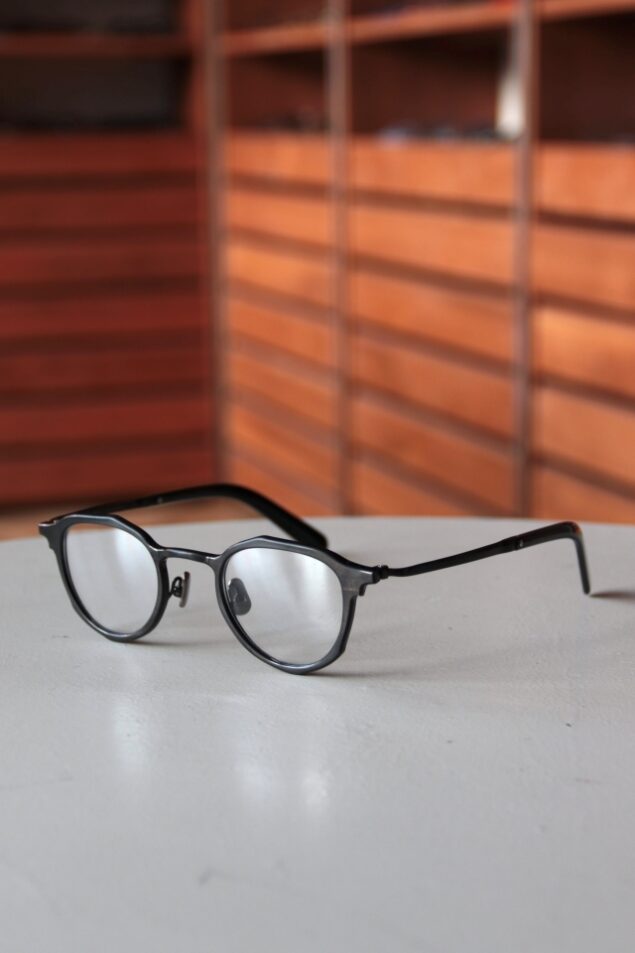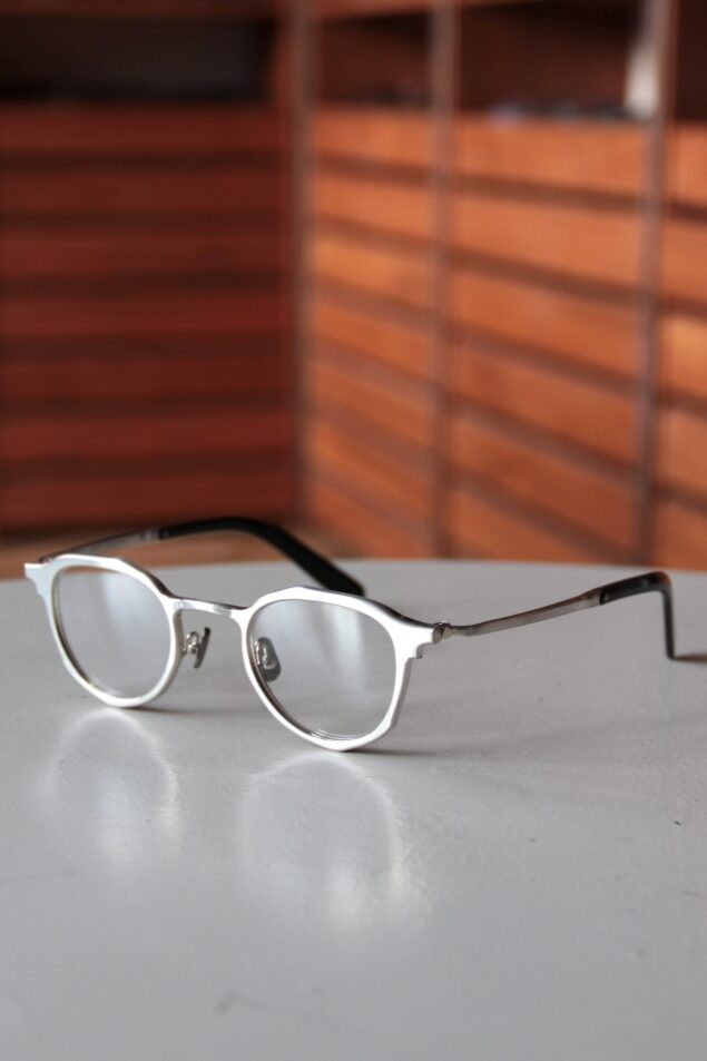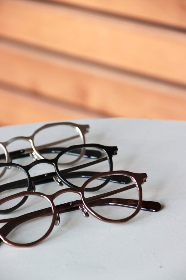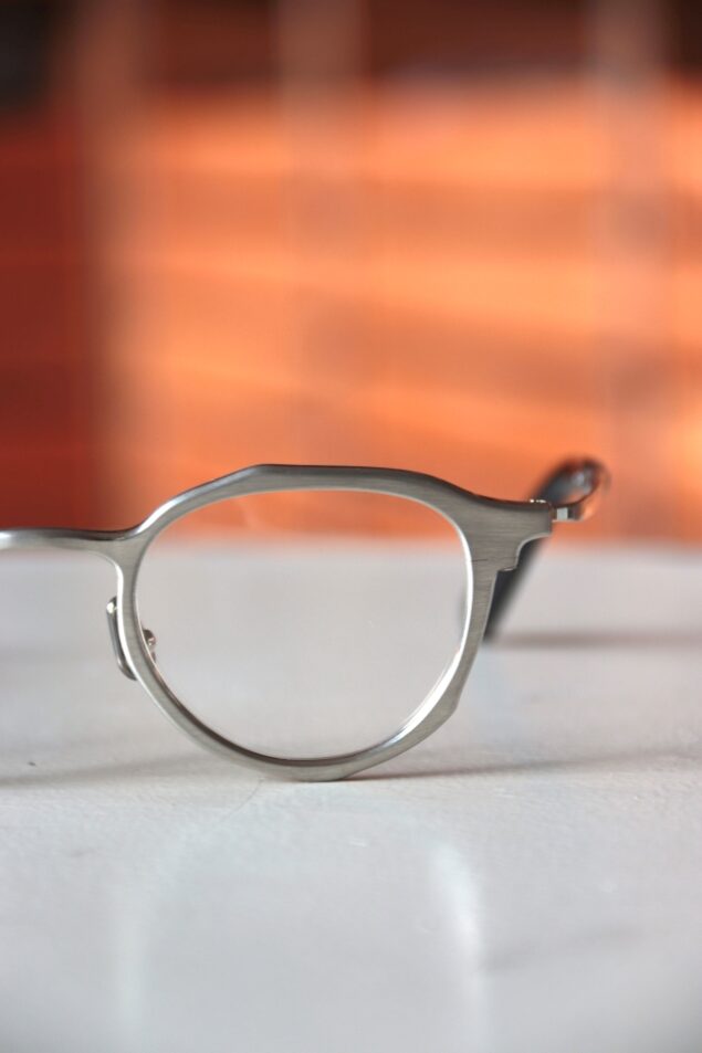 大胆なカッティングが魅力のセルフレーム、上質なチタンを贅沢に使用したメタルフレームは、精密機械のように繊細に組み合わさり高い機能美を感じるフレームを生み出します。