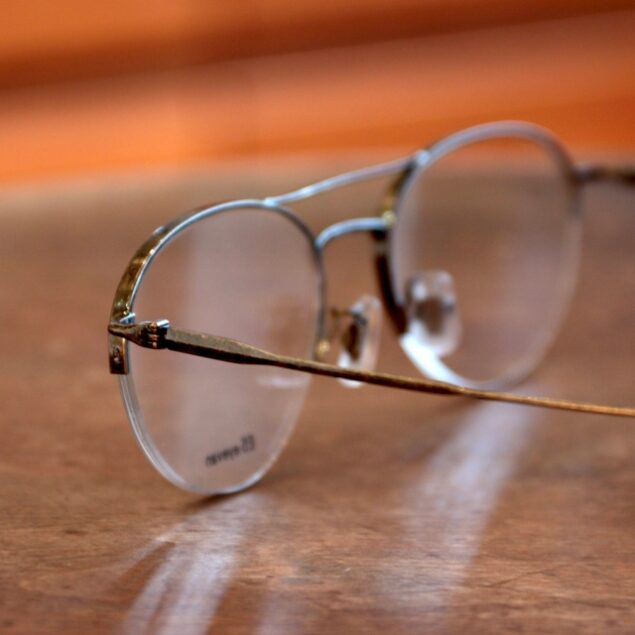 リム上部は肉厚ながら、下部はリムレスでナイロールになったシンプルながらユニークなデザインが目を惹きます。