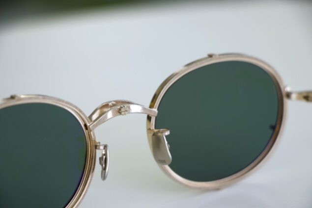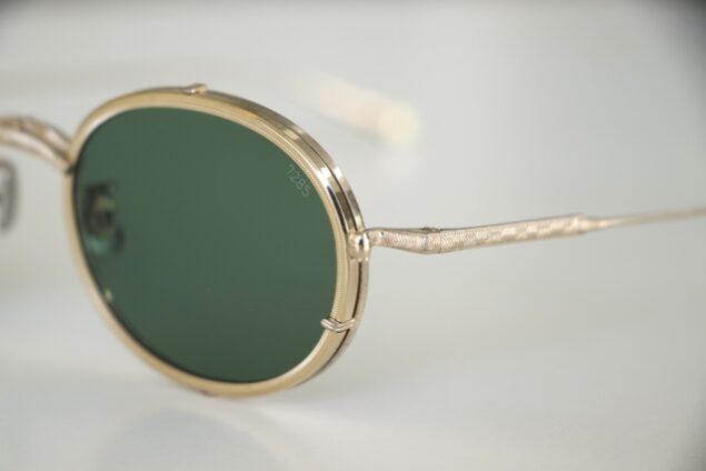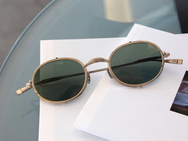 テンプルや、レンズの縁にもミル打ちや彫金を施し高級感のある作り。